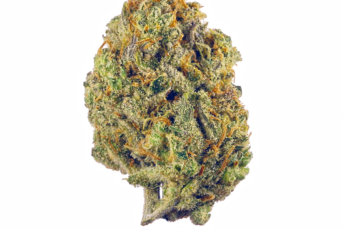 - Класична структура OG Kush з темно-зеленими бруньками та помаранчевими пестиками